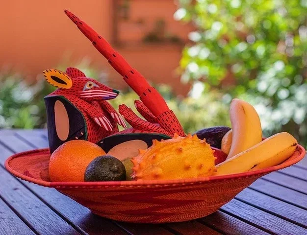 And now, the lagniappe – the unexpected gift — the story behind Nancy’s charming photograph. For years, she has been collecting delightful Mexican carved creatures, and she has been creating tableaux in which they can find their own voices. Since retiring at the end of 2022, she has taken up photography and has been honing her creative skills.